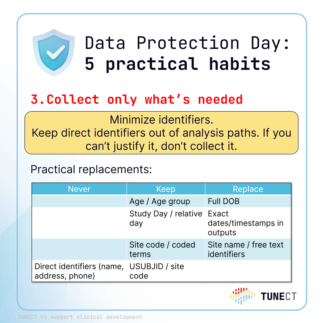 3. Collect only what’s needed: